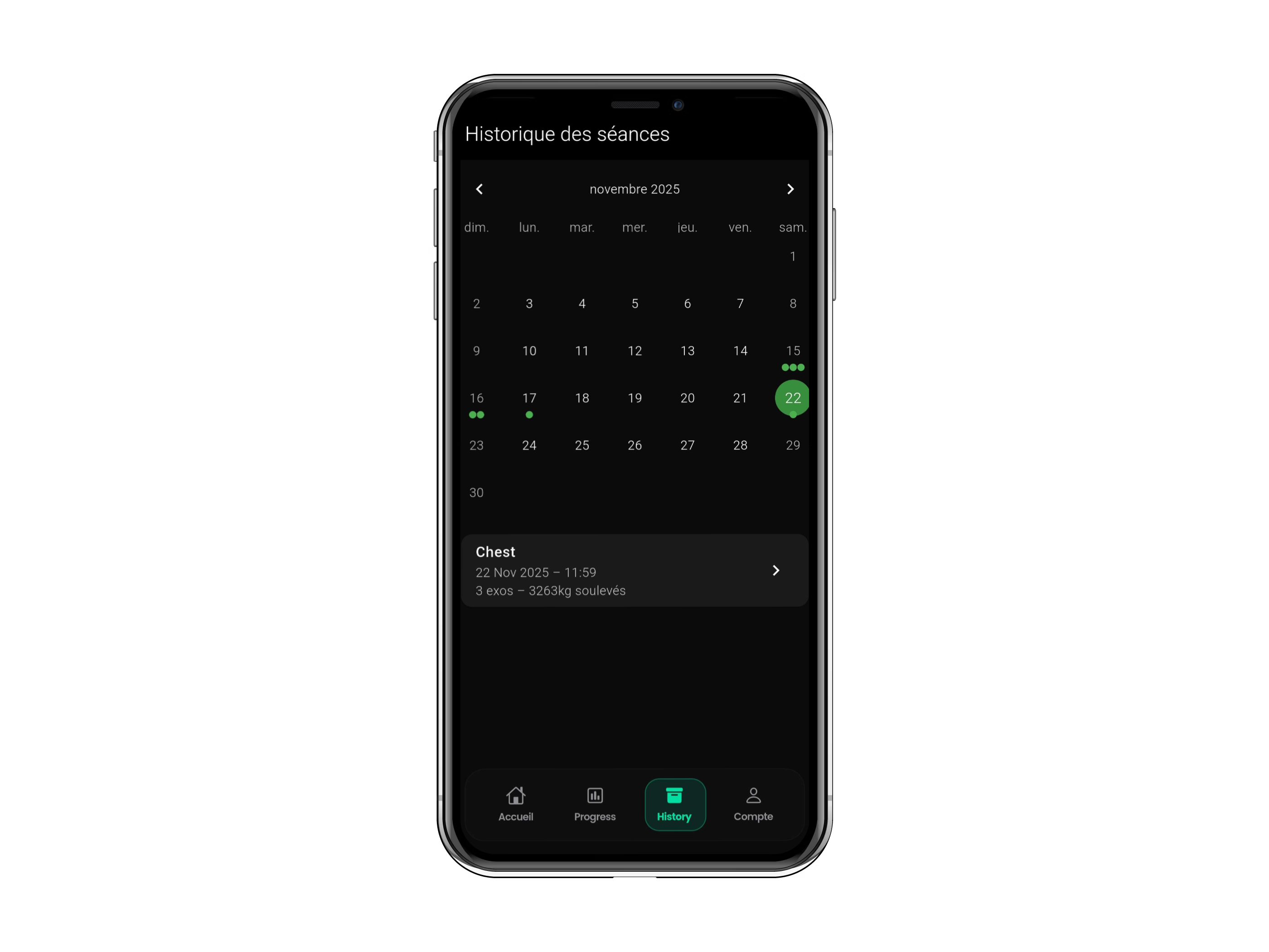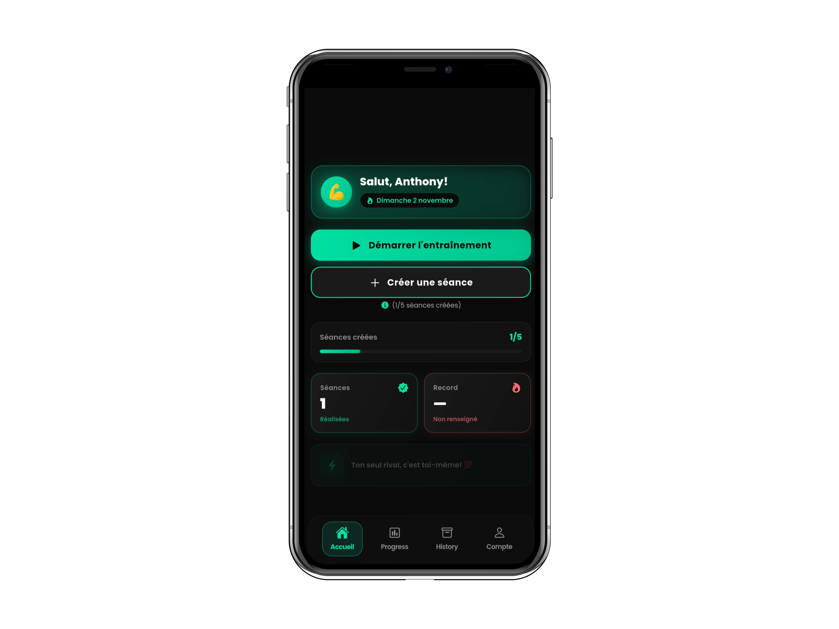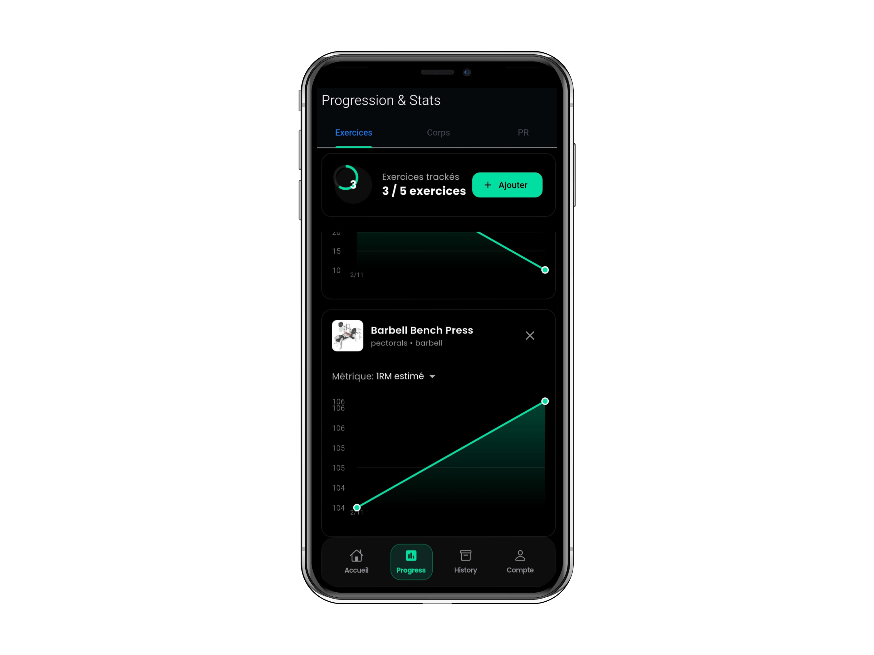 Le trackeur de gym ultra-simple qui vous permet de vous concentrer sur l'essentiel : vos performances. Suivez votre progression à long terme avec clarté.